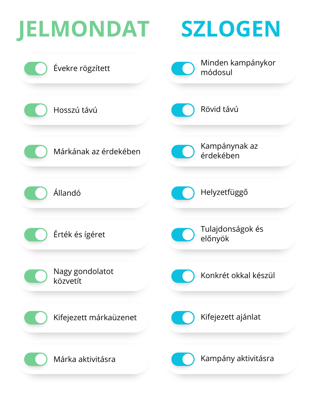 Jelmondatok esetén nagyon fontos, hogy időtálló legyen és kiszolgálja a márka életének nagy részét. Szlogenek esetében is fontos, hogy ne váljon elavulttá amíg a kampány tart.